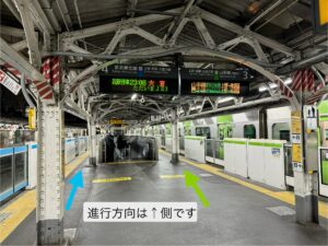 4.エスカレーターを上った先が、■JR中央線ホームです。左側が5番線(東京行)、右側が6番線(高尾方面)です。