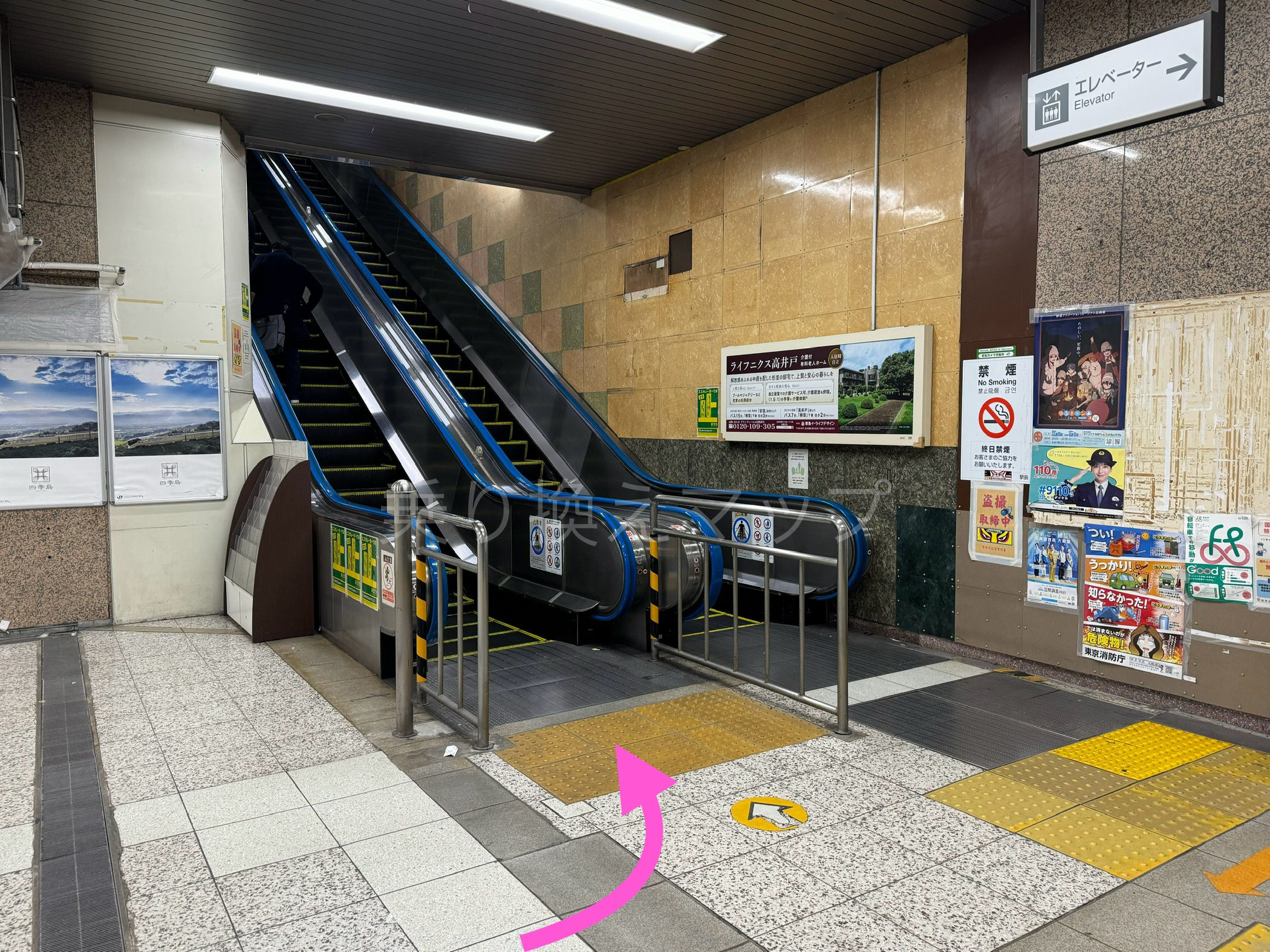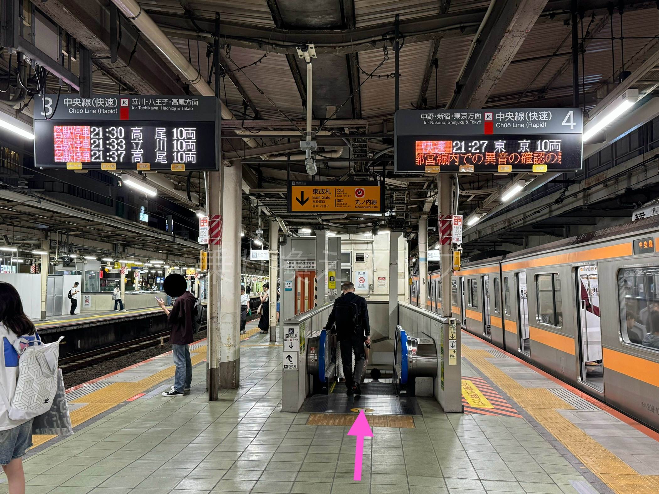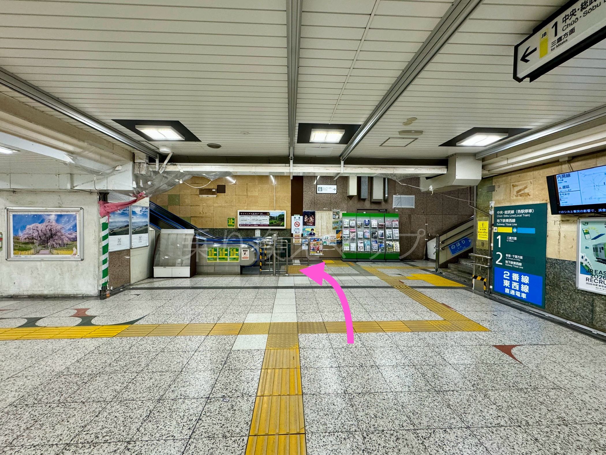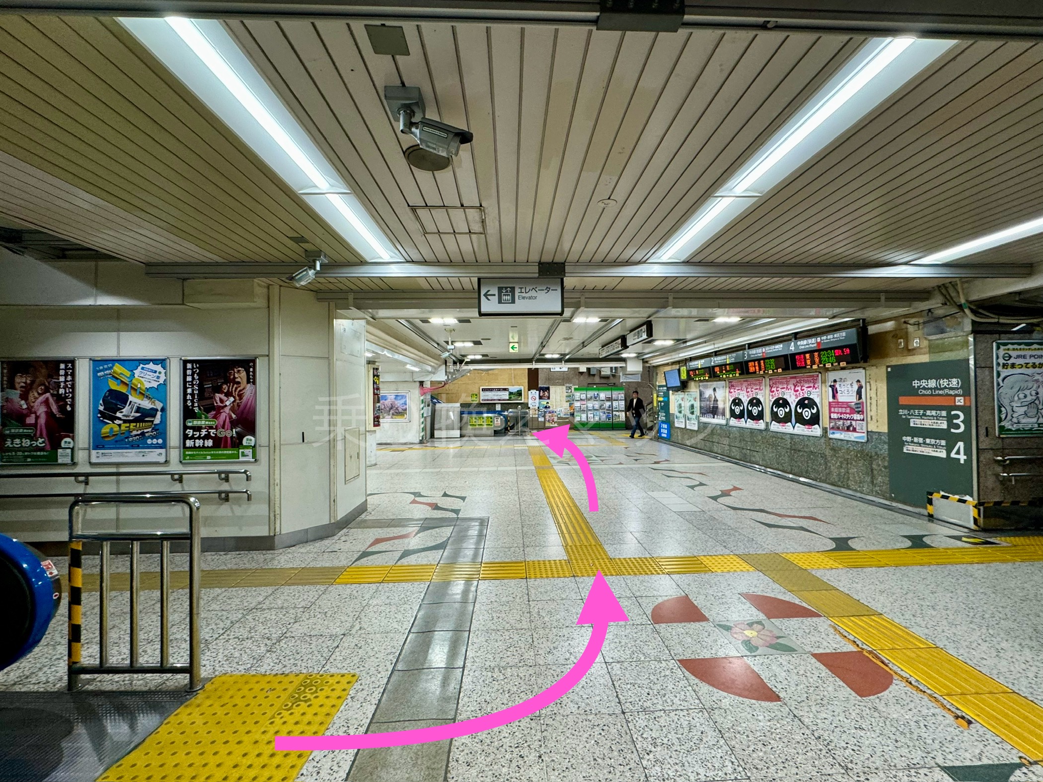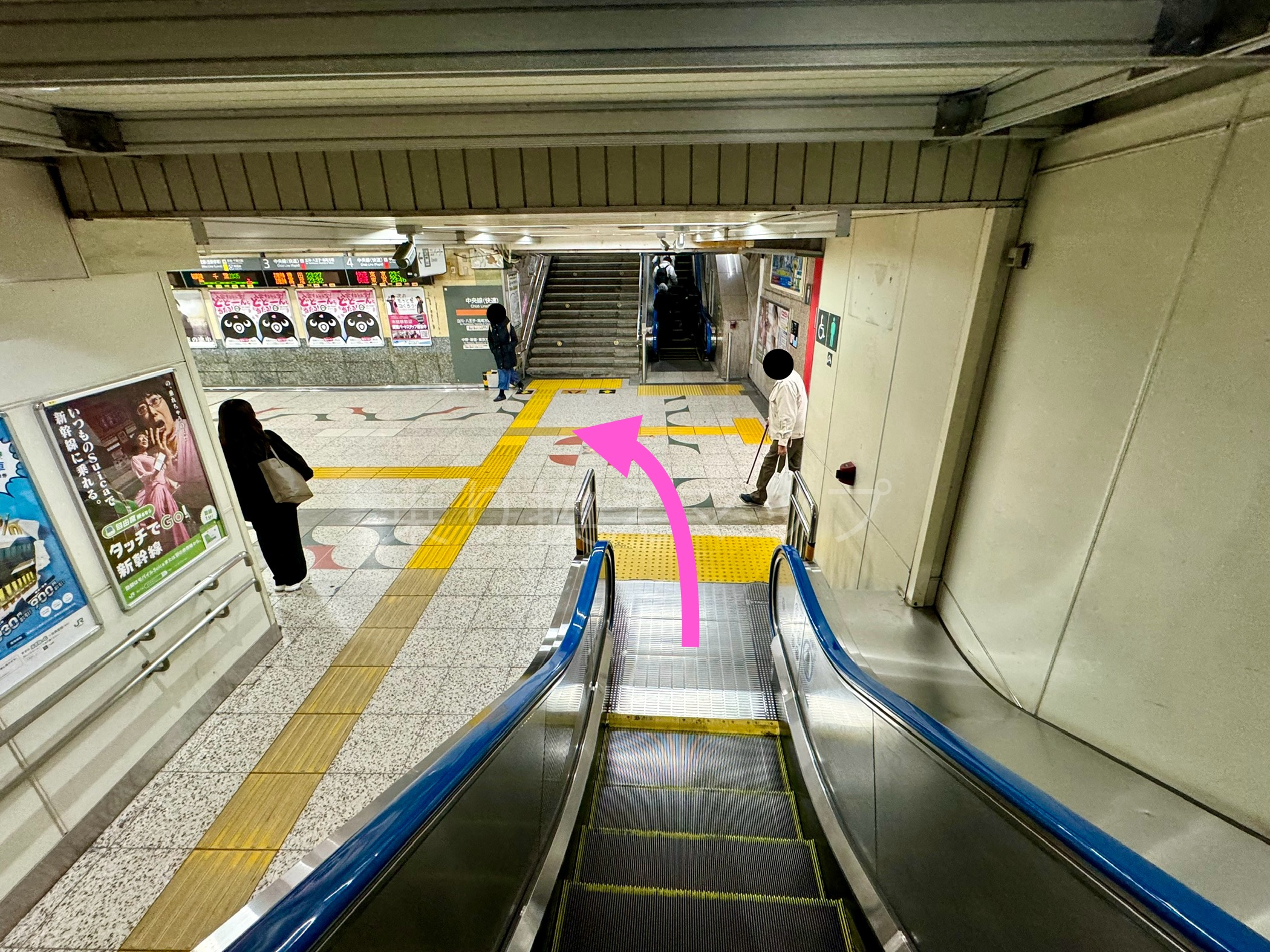3.エスカレーターor階段を上った先が、中央・総武線ホームです。