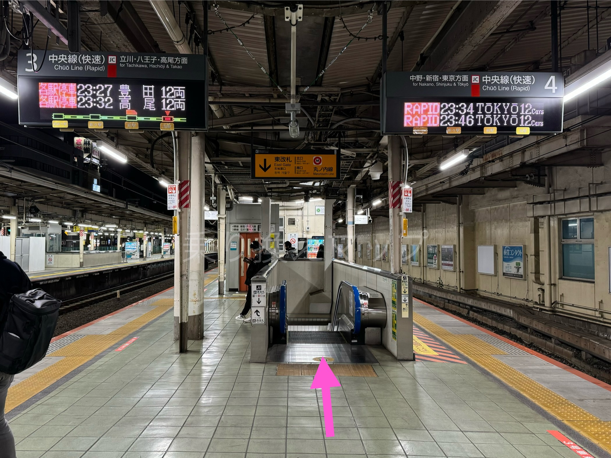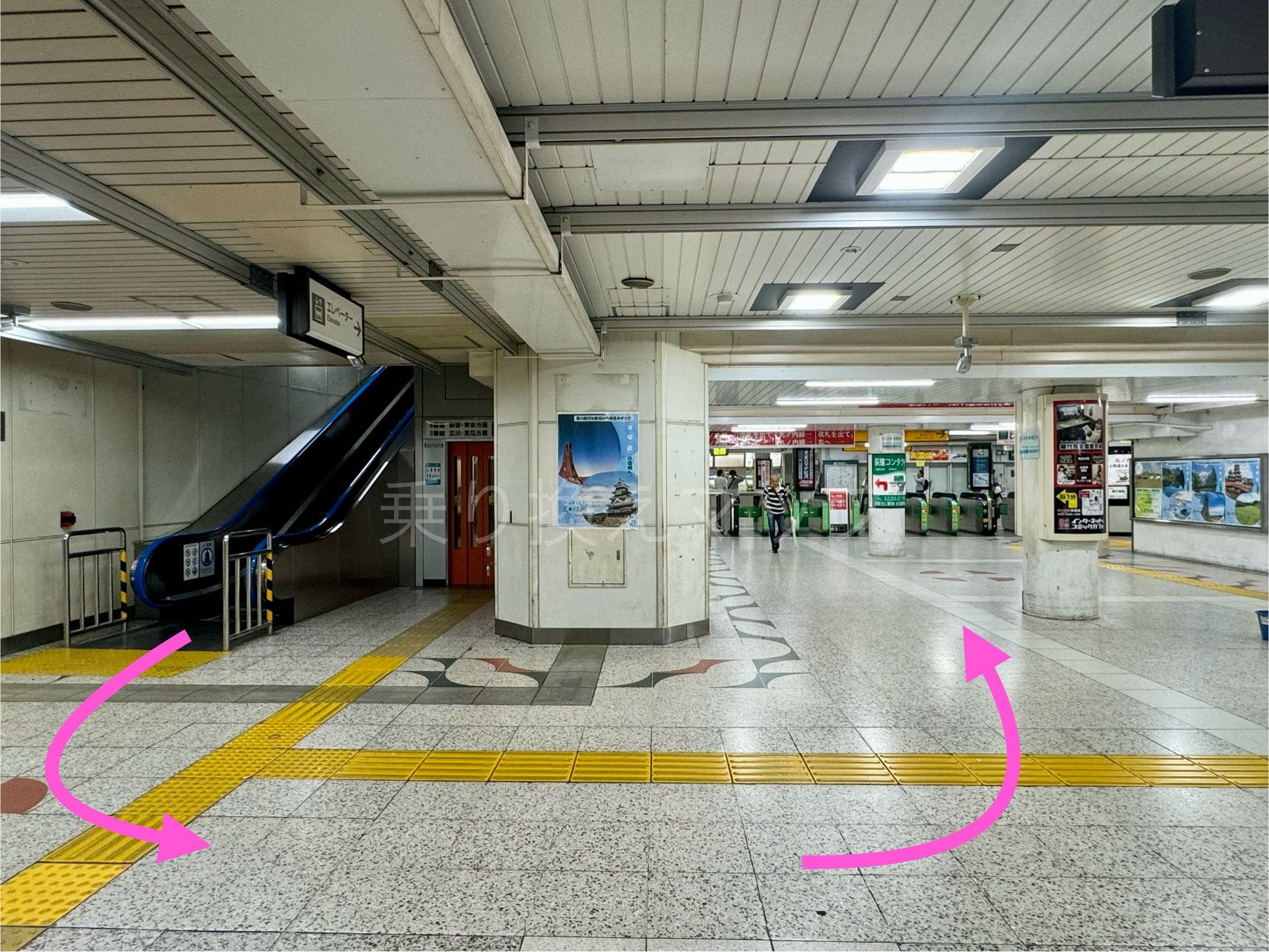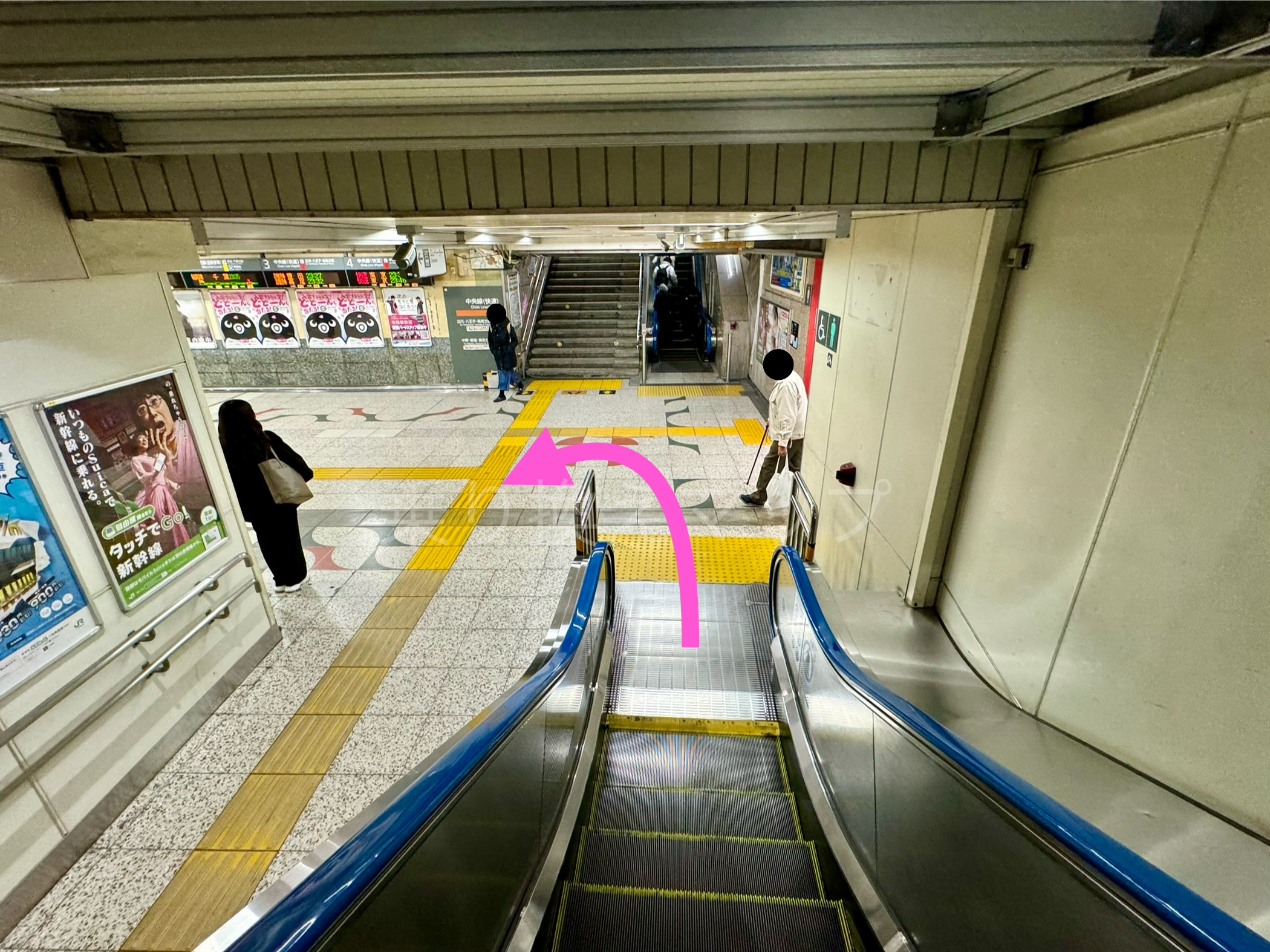 1.4号車4番ドア付近にあるエスカレーターを上ります。