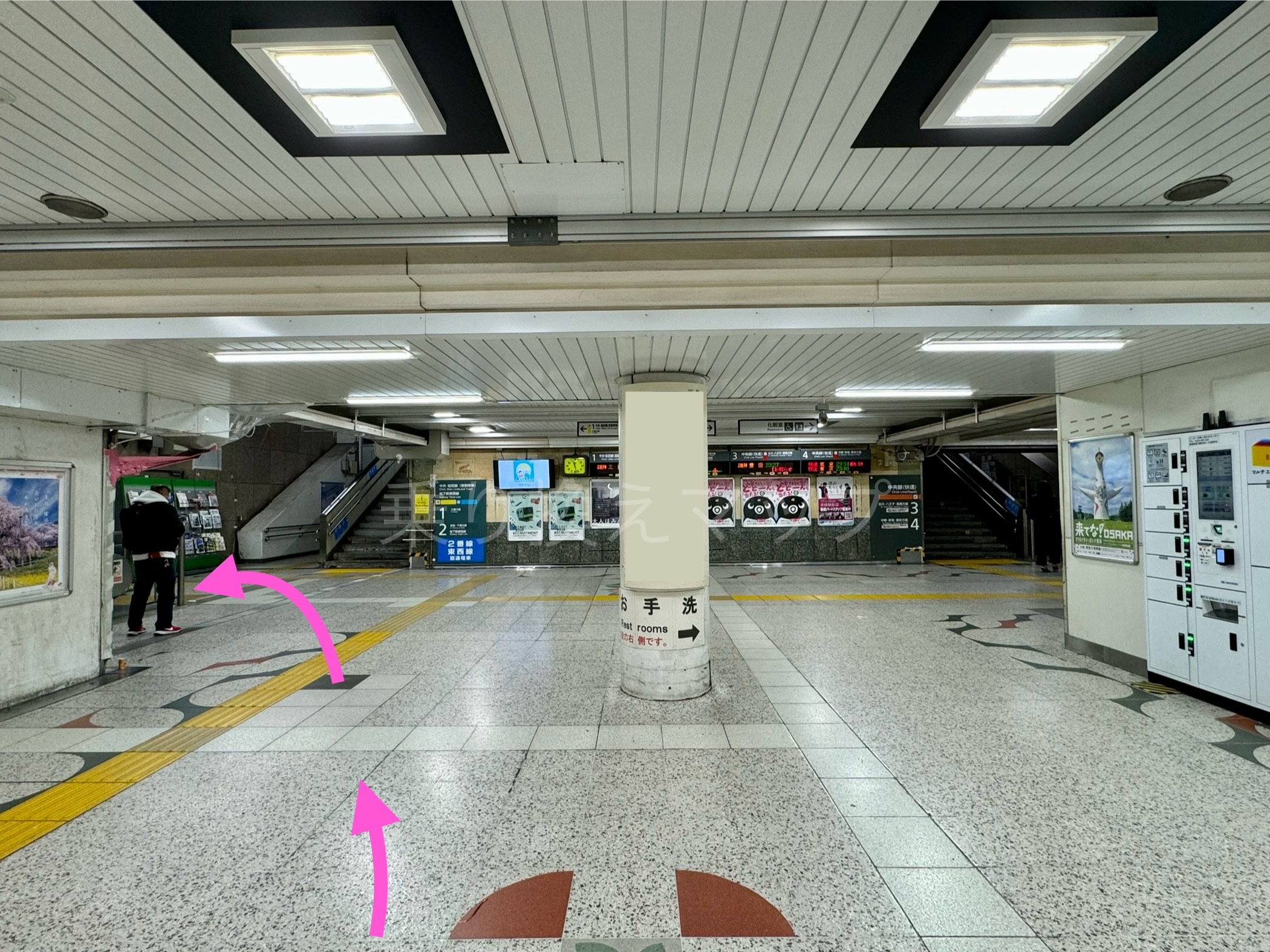 2.左側にある改札を通過します。その後右方向へ進みます。