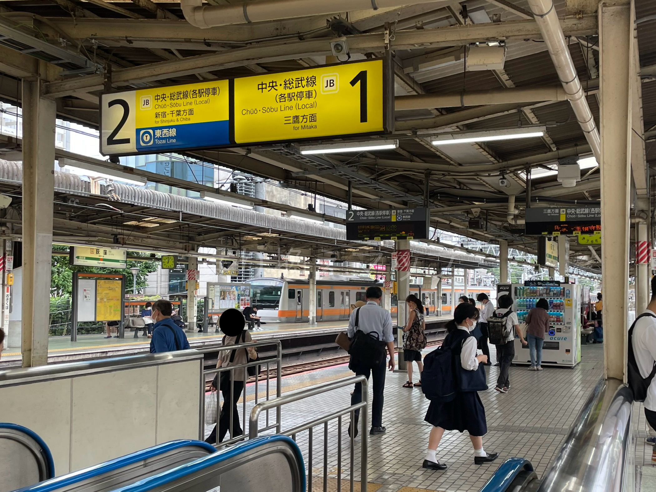 左側が2番線(西船橋・千葉方面)、右側が1番線(三鷹方面)です。