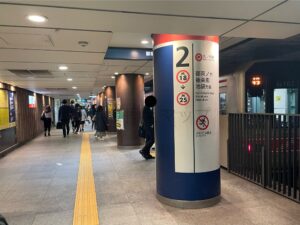 1.ホーム先端(10号車4番ドア付近)にあるエスカレーターor階段を上ります。